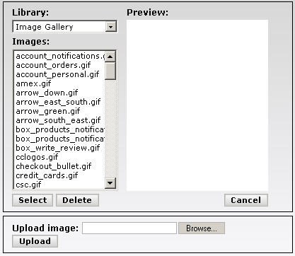 It offers an easy way to access any image in the Image Library (which is the library of images that Merchant Manager includes for standard store elements), and allows you to upload your own images.