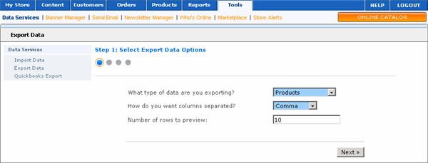 Merchant Manager's Data Services allows you to import and export products, categories, product attributes, orders, and customers.