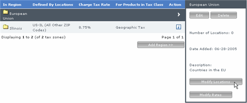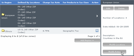 Click the appropriate region name. In our case, click European Union and then Modify Rates.
