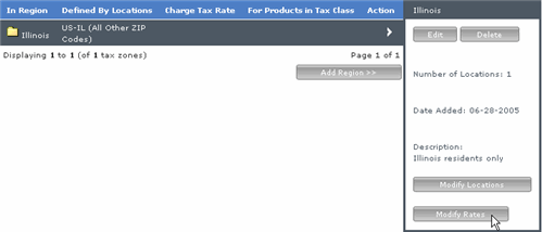 Click the appropriate region name. In our case, click Illinois and then Modify Rates.